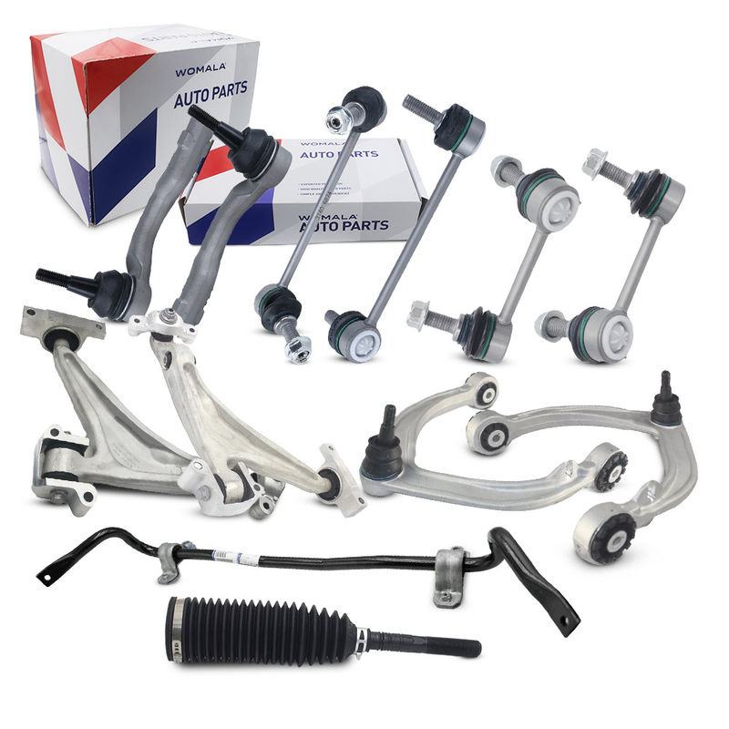 ذراع التحكم، ومدفئ الصدمات، ومدفأ ذراع التحكم، وقطن الدعم، ومجموعة النفخات (على افتراض أنه يشير إلى نفخات تعليق، وهي نوع من المكونات المرنة المستخدمة في أنظمة التعليق) ،محمل ضغط (على افتراض أنه يشير إلى محمل ضغط مدمّر الصدمات)المطاط العازل ، غطاء المحور الخلفي ، غطاء المحور الأمامي ، مفصل كرة ذراع التحكم ، قضيب الربط ، المثبت (المعروف أيضًا باسم شريط التأرجح) ، المحامل ،والريشات كلها عادة جزء من نظام تعليق السيارة.
